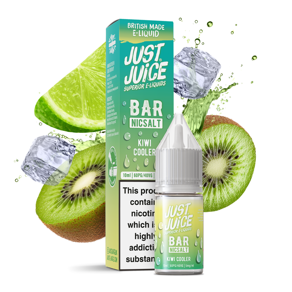 With Kiwi Cooler nicsalt e-liquid you can enjoy a crisp, cooling blend of juicy kiwi, fresh cucumber, and zesty lime—lifted by a good level of ice for a chilled and revitalising vape.